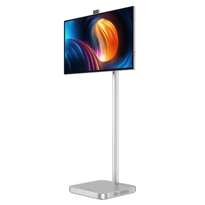 31.5-inch (32-inch class) 4K UHD (3840 x 2160) full lamination touch screen, VA panel technology with 3000:1 contrast ratio, 10-point multi-touch, aspect ratio 16:9, glossy screen, Android OS 11, MT8195 Octa-core CPU (6nm flagship mobile SoC), 8GB RAM, 128GB storage, built-in 144Wh battery (4+ hour battery life), Wi-Fi, Bluetooth, ambient light sensor, Google Play and Google service support, flexible wireless mobility with four universal silent wheels, easy adjustment (tilt angle: -18° to 18°, swivel: -30° to 30°, pivot: 90°, height adjustment), wide viewing angles (178° horizontal/vertical), wide color gamut (99% sRGB, 85% NTSC, 92% DCI-P3, 84% Adobe RGB), 8MP magnetic camera (landscape/portrait), 4-array DSP noise-cancelling microphones (range up to 5 meters), 2 x 10W built-in speakers, HDMI and USB 3.0 ports, mini HDMI + type C connector, multi-screen connectivity via e-Share, supports Windows, Android, iOS wireless screen projection, weight 27.3 kg, model number DHI-LM32-U400P, color: silver.
